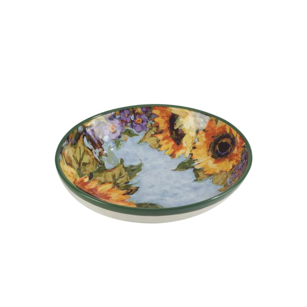 El bowl con diseño de girasoles es una pieza única que combina funcionalidad y estilo, ideal para los amantes del vino. Medida: 8cm alto x 33cm diámetro.
