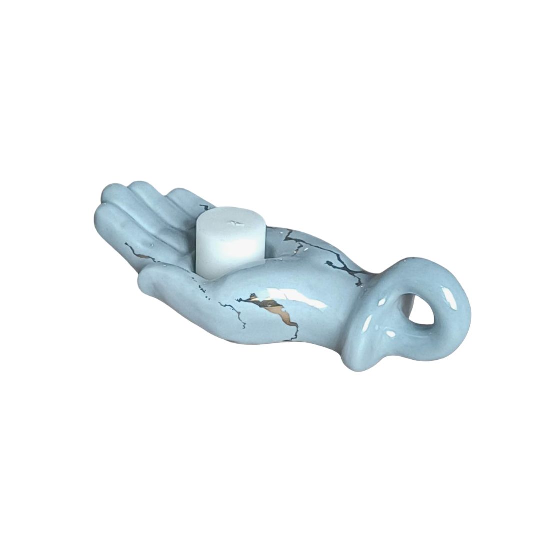 Este candelabro con forma de mano no solo es una expresión de habilidad artística, sino también una pieza que agrega sofisticación y carácter a cualquier espacio. Ya sea como elemento central en una mesa de centro o como pieza destacada en una estantería, su presencia evoca admiración y curiosidad, invitando a contemplar su forma y textura detallada.