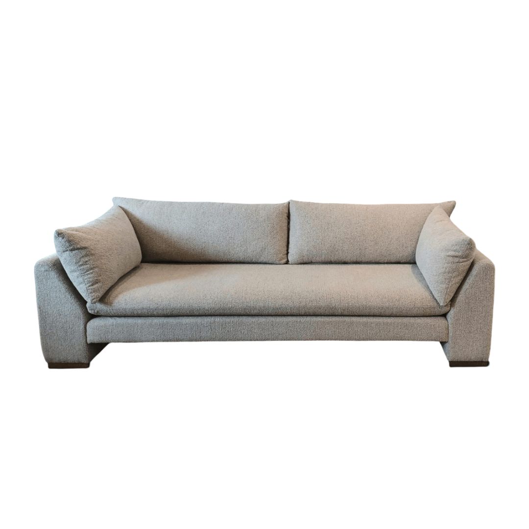 Este sofá destaca por su diseño contemporáneo y minimalista, ideal para interiores modernos y escandinavos. Tapizado en tela tipo boucle, su textura suave y esponjosa le da un aspecto acogedor y sofisticado.